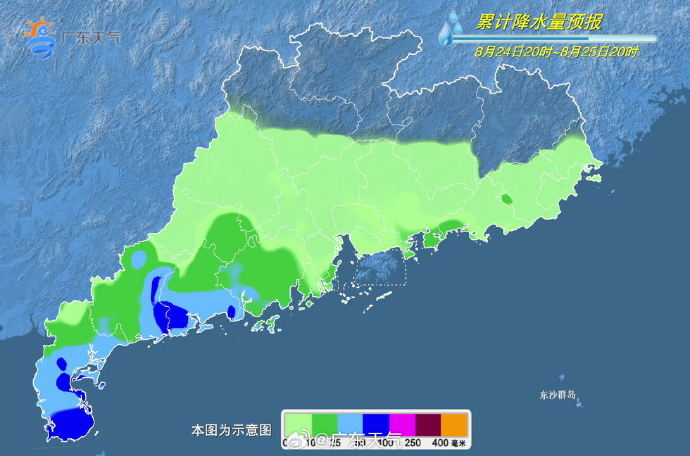 据@广东天气,预计24日-25日,雷州半岛有大雨到暴雨局部大暴雨并伴有7~10级阵风;茂名、阳江和江门三市的沿海县(区)和海岛有大雨局部暴雨并伴有6~8级阵风,其余市县多云有(雷)阵雨局部大雨或暴雨,雷雨时局地有8级左右短时大风;沿海县(区)和海岛伴有5~7级阵风。
