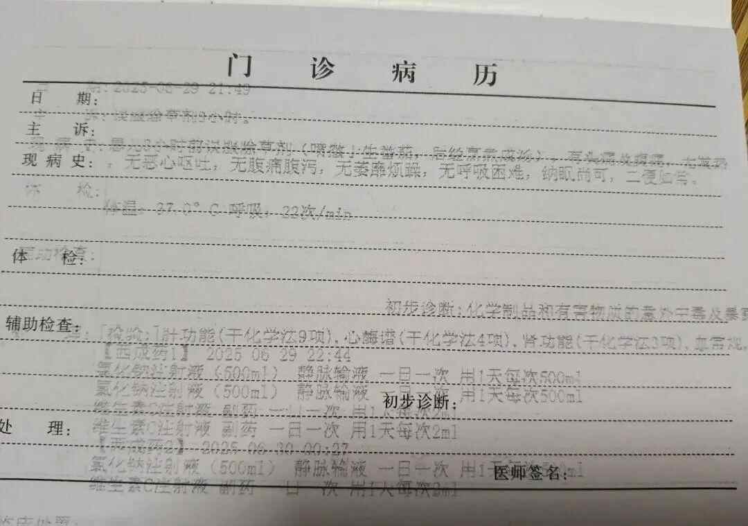 因口角纠纷菜园被喷农药,一家人误食后出现中毒症状