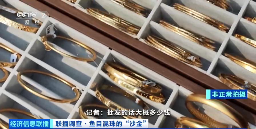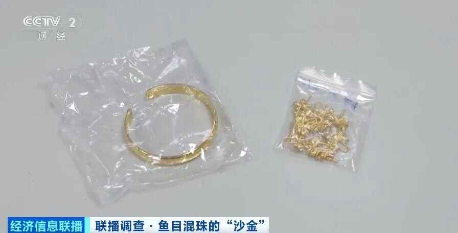 出厂价10元左右的黄铜镀金首饰,到了街头夜市上,就摇身一变成了40元左右的“沙金”首饰。而在网上的直播间里,更是被主播包装成所谓越南提纯“沙金”,一件首饰卖到上百元。也就是说,虽然“沙金”的名称,给人一种天然黄金副产品的印象,但实际上,当前市面上销售的绝大多数所谓“沙金”饰品,与黄金并无关系。浙江义乌的商户还告诉记者,虽然网上大肆宣传所谓的“沙金”饰品内外一色、火烧后仍然是金色,事实并非如此。
