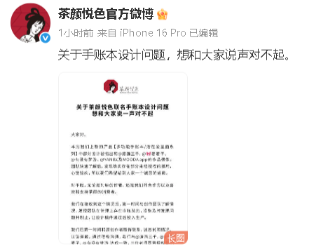 @茶颜悦色官方微博 发文回应抄袭事件。其称:在接收到这个情况后,第一时间与创作团队了解情况,发现团队在管理上存在审核疏忽,没能及时发现问题并制止,让设计稿件通过后投入生产。我们已第一时间和原创作者取得联系,诚恳说明情况、认错道歉。