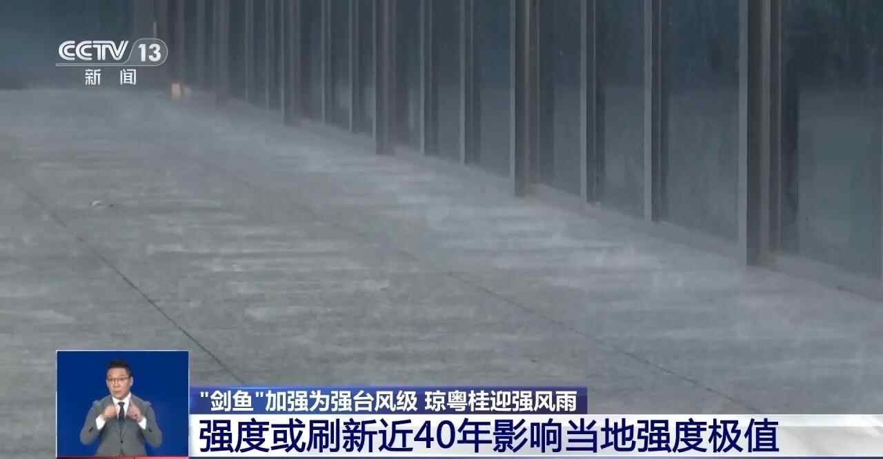 记者24日下午从海南省气象台了解到,“剑鱼”已于24日14时加强为强台风级,预计其将于24日傍晚到夜间从三亚到乐东一带近海擦过,24日下午至25日海南省有强风雨天气。