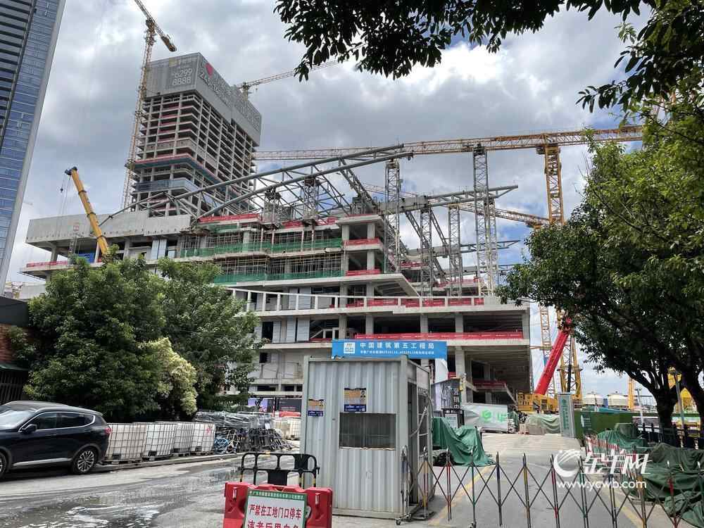 当前,华润置地在白鹅潭开发的万象城项目正在施工建设。记者走访看到,万象城综合体的建筑架构外形显现,建筑内有施工工人在作业施工。