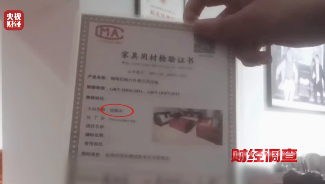 个别商家之所以能坦然编谎,正是认定消费者没有能力辨别木材的种类与产地,只能听信他们的说法。而这类商家为了让自己的话显得“有依据”,还会特意为家具配上相关证书。