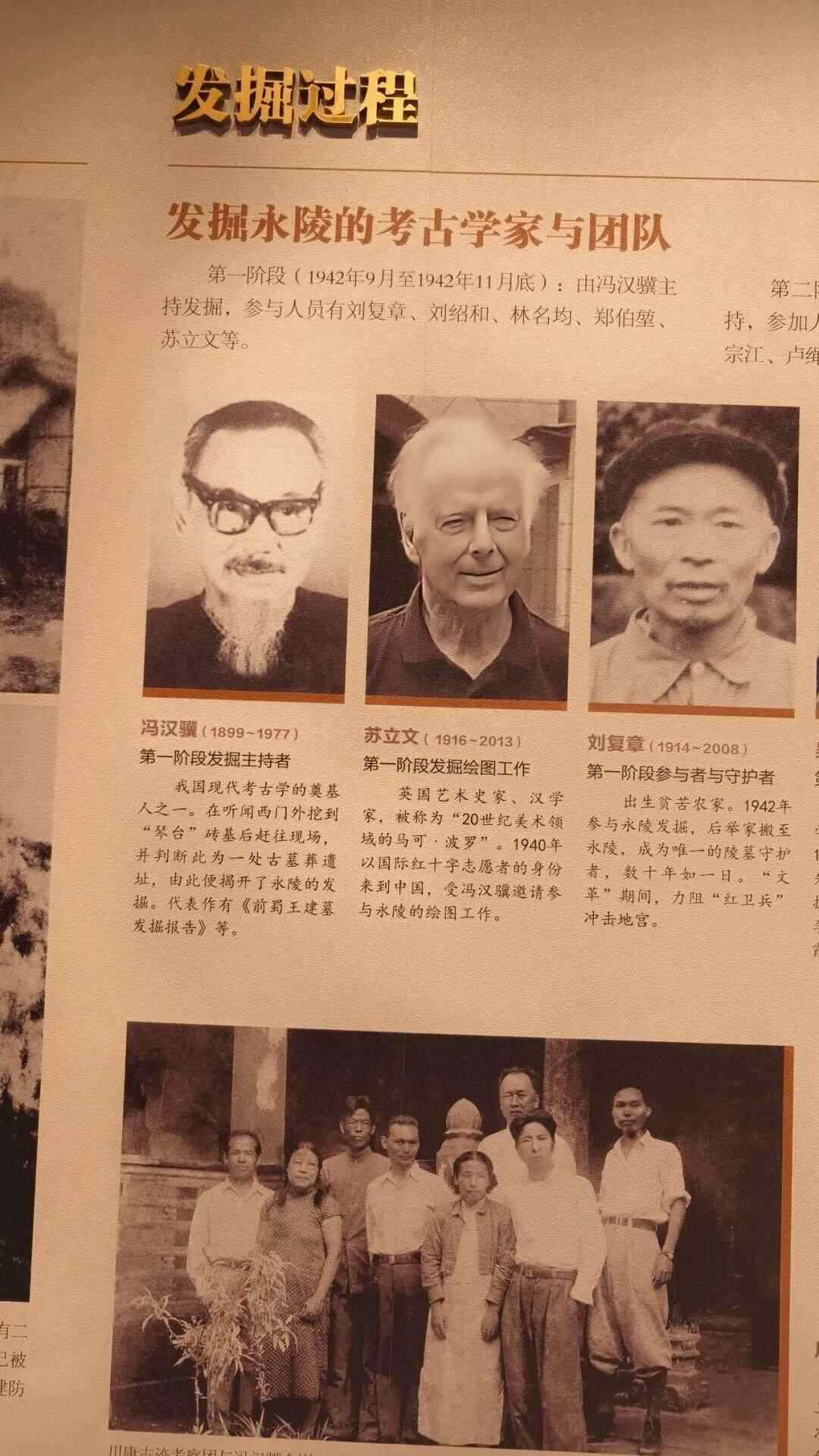 非常惊喜的是,在永陵博物馆看到了苏立文先生的介绍——1940年,苏立文以国际红十字志愿者的身份来到中国,受冯汉骥邀请,参加永陵的绘图工作。苏立文后来成为著名汉学家,对中国艺术有深湛研究,和黄宾虹交往甚深。21世纪初,91岁高龄的苏立文先生到访广州时,我对他有过一次深度采访。没想到他和永陵居然有如此深的缘分。