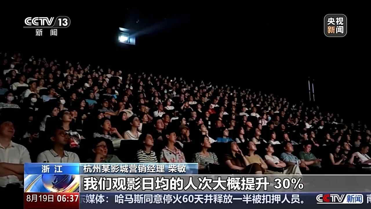 杭州某影城营销经理 柴敏:优质影片上映,加上消费券的助力,暑期档后半程对比暑期档前半程,观影日均人次大概提升30%。