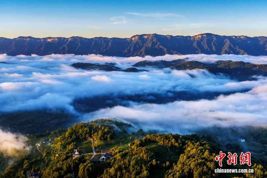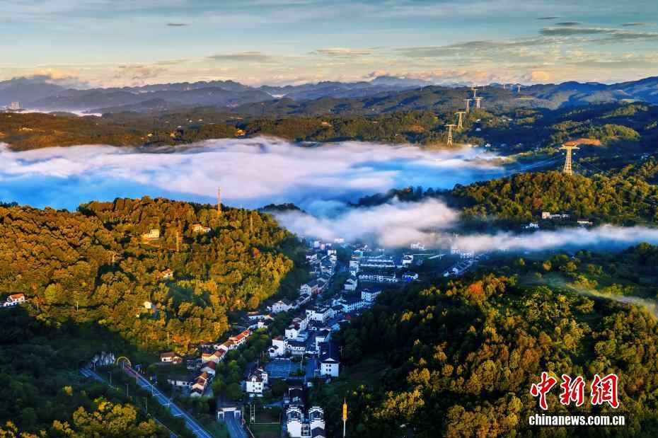 8月18日,湖北省宜都市迎来壮丽日出云海景观。清晨时分,朝阳初升,在宜都市潘家湾土家族乡至王家畈镇之间,金色霞光与漫山云海交相辉映,层层叠叠的云涛随风流动,构成了一幅绝美的自然画卷。图为宜都渔洋河上空飘起白色的晨雾。