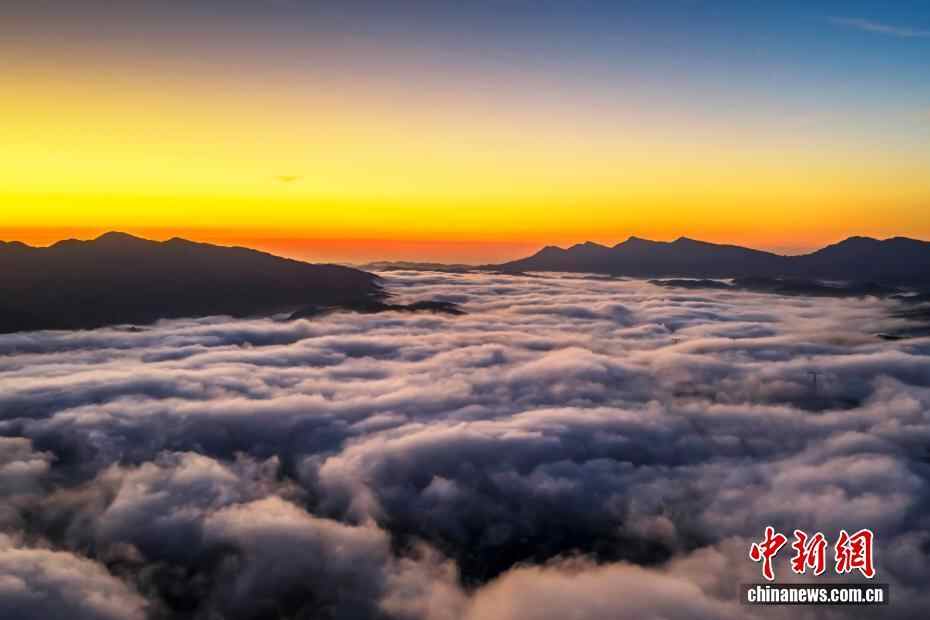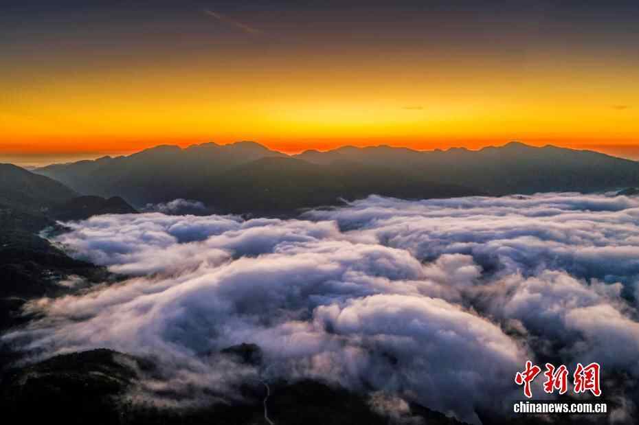 8月18日,湖北省宜都市迎来壮丽日出云海景观。清晨时分,朝阳初升,在宜都市潘家湾土家族乡至王家畈镇之间,金色霞光与漫山云海交相辉映,层层叠叠的云涛随风流动,构成了一幅绝美的自然画卷。图为层层叠叠的云涛随风流动。