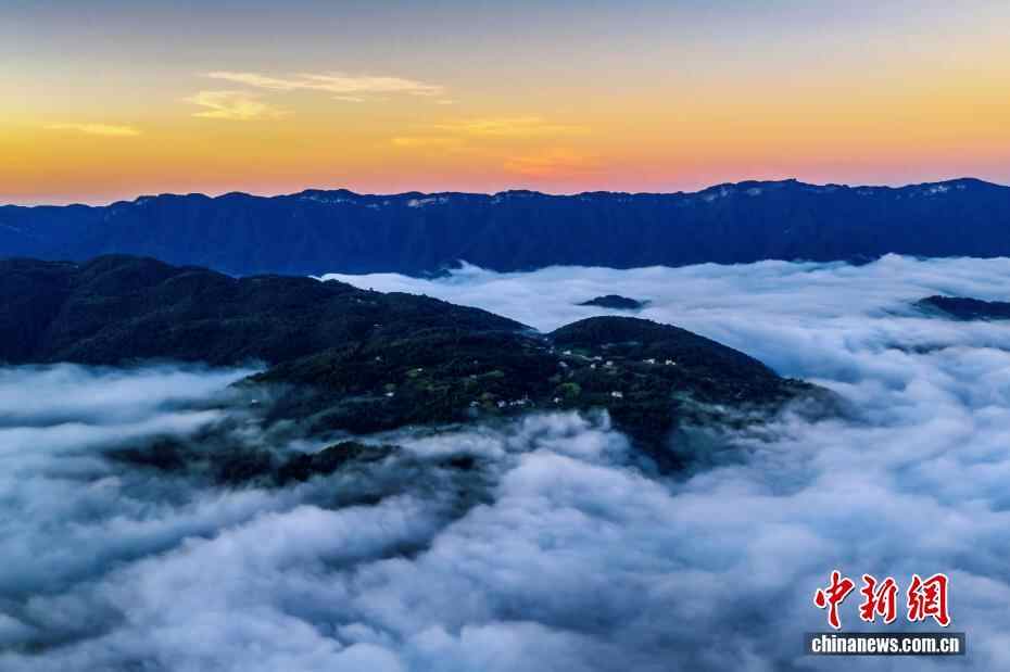 8月18日,湖北省宜都市迎来壮丽日出云海景观。清晨时分,朝阳初升,在宜都市潘家湾土家族乡至王家畈镇之间,金色霞光与漫山云海交相辉映,层层叠叠的云涛随风流动,构成了一幅绝美的自然画卷。图为群山在云雾中若隐若现。