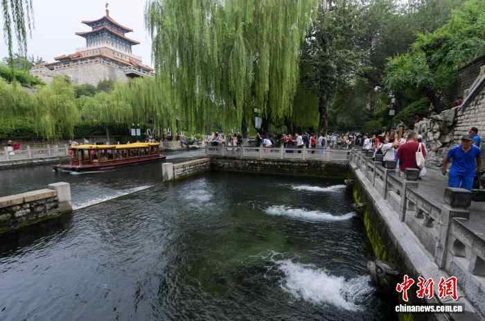 山东济南:黑虎泉三只“兽头”欢畅喷涌