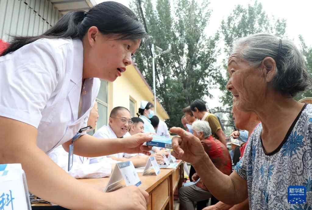 8月18日,在山东省滨州市博兴县庞家镇红星村,博兴县中医医院医生在“爱心义诊”中为村民进行健康咨询。