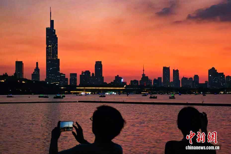 8月18日傍晚,南京上空霞光满天,“扮靓”城市。