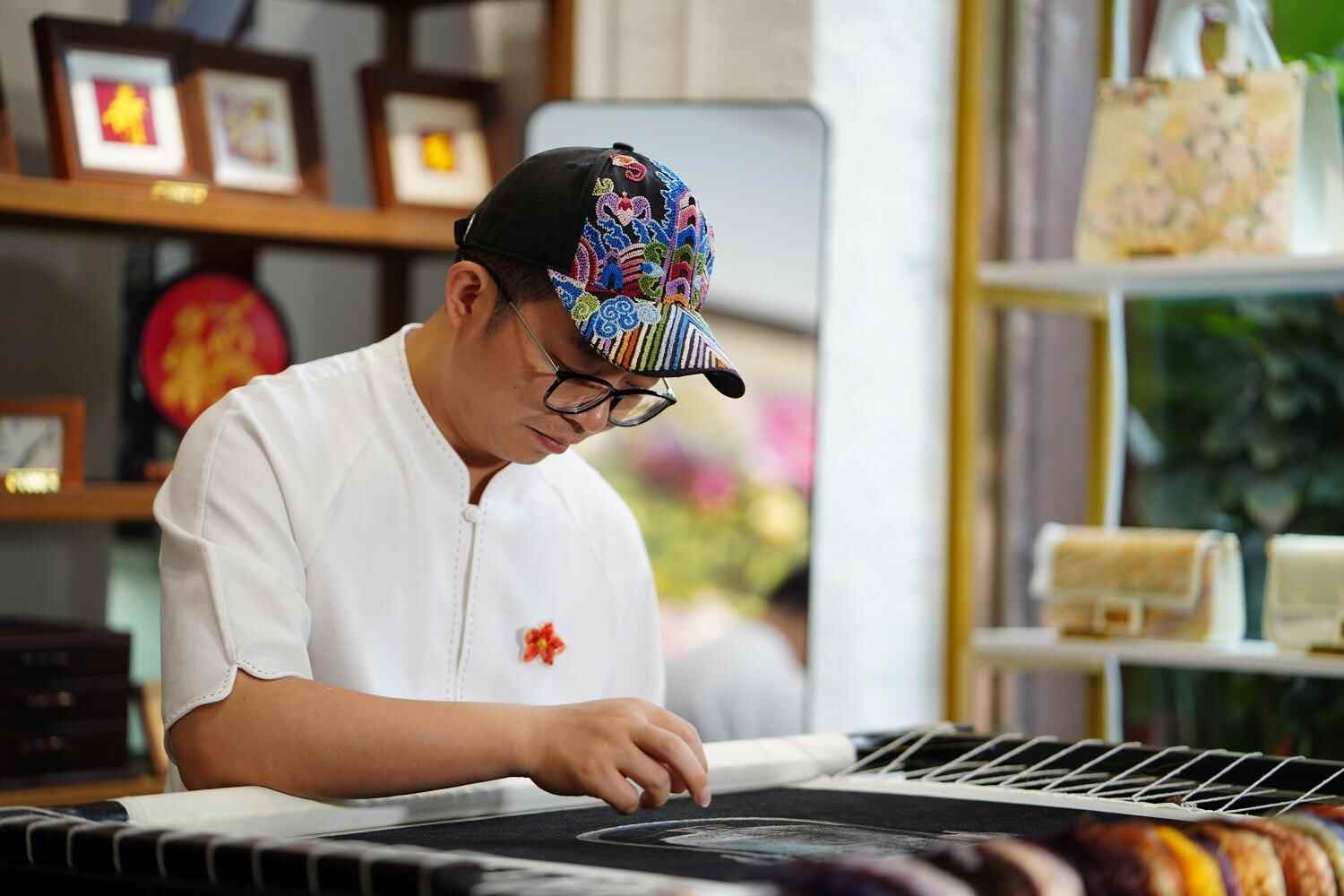 不仅如此,王新元的工作室还将广绣融入帽子、首饰盒、蓝牙音响等生活产品,让广绣艺术走出“画框”,走进日常。