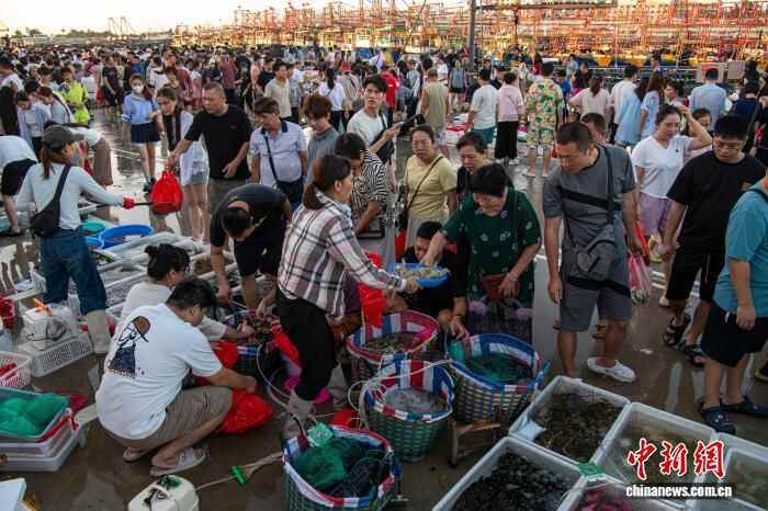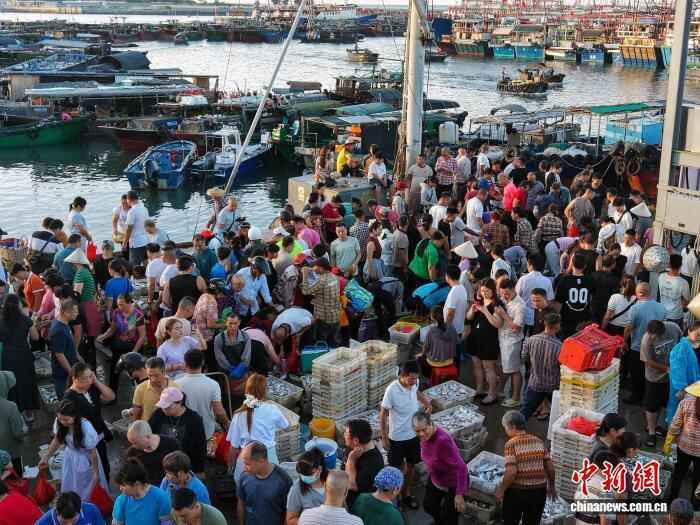 图为民众在电建渔港码头购买海鲜。中新社记者 翟李强 摄