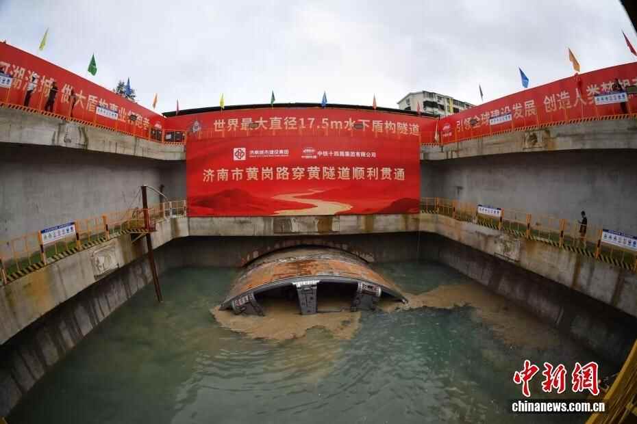 8月17日,山东济南,“山河号”盾构机抵达接收工作井。当日,世界最大直径水下盾构隧道济南黄岗路穿黄隧道工程顺利贯通。该隧道全长约5.75公里,其中盾构段长3.3公里,设计为单洞双层6车道公路隧道。