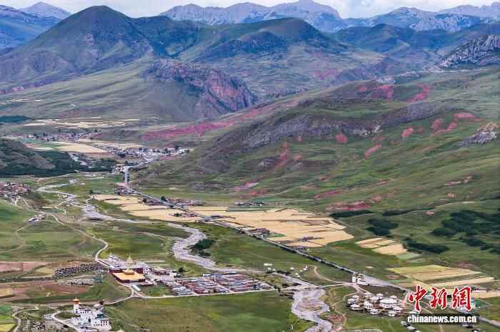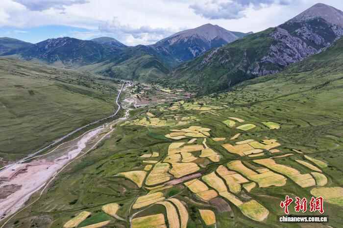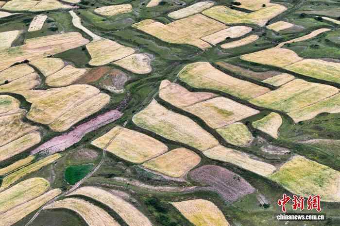 图为山间连片成熟的青稞。(无人机照片)中新社记者 薛蒂 摄