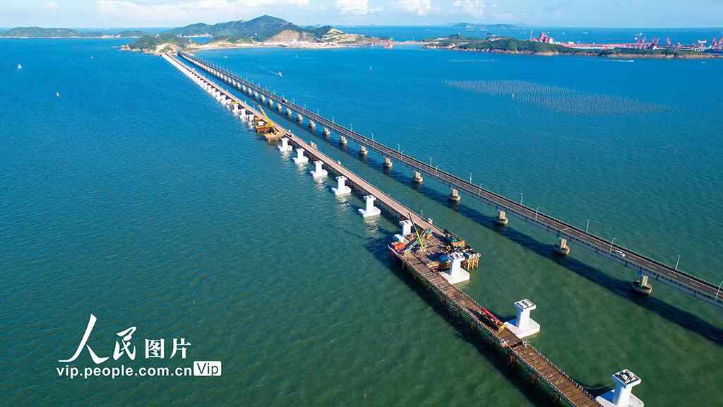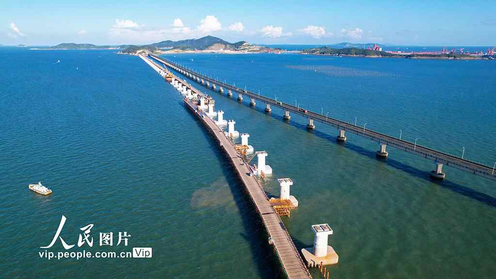 据悉,头门港铁路跨海特大桥全长12公里,建成后将进一步完善台州港口集疏运体系,激活金台铁路货运运能,强力带动区域经济高质量发展。文瑞摄(人民图片网)