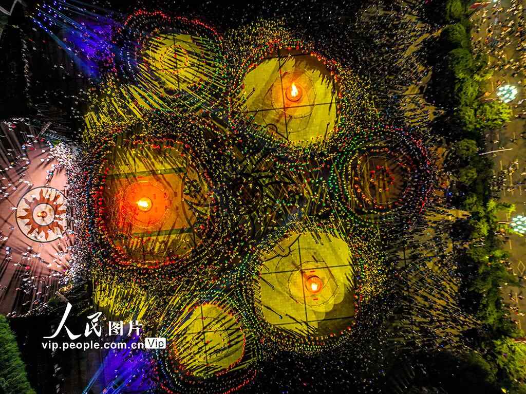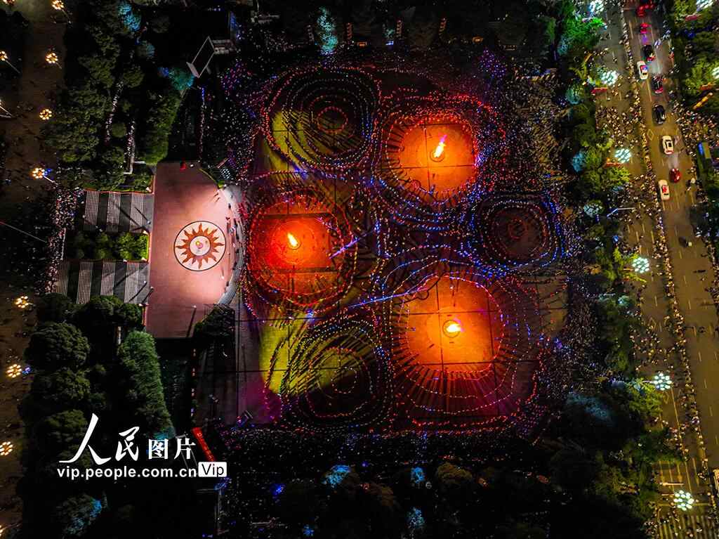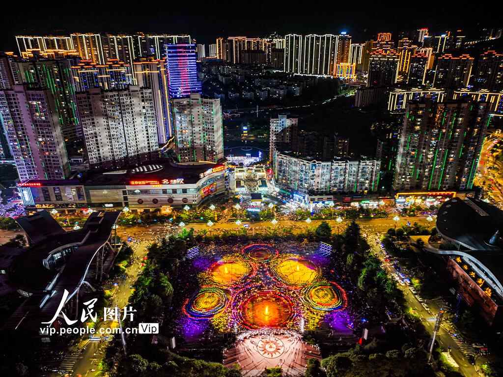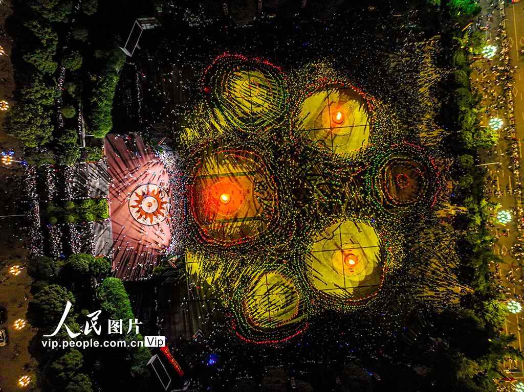 8月17日,贵州省黔西市举行2025年火把节狂欢夜,数万游客与当地各族群众以篝火为纽带共舞欢歌,激情狂欢点燃夜空,到处是一片欢乐的海洋。周训超摄(人民图片网)