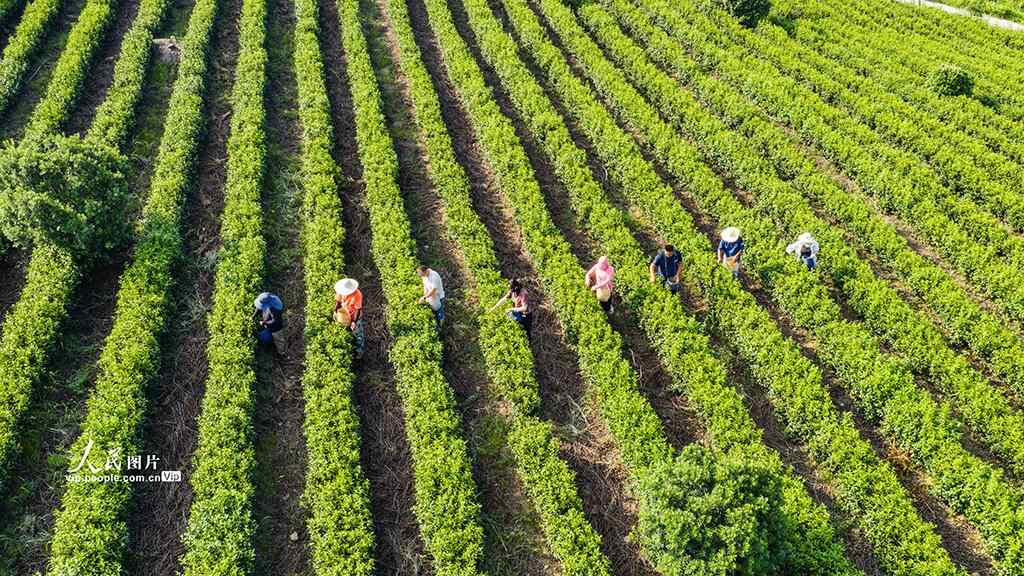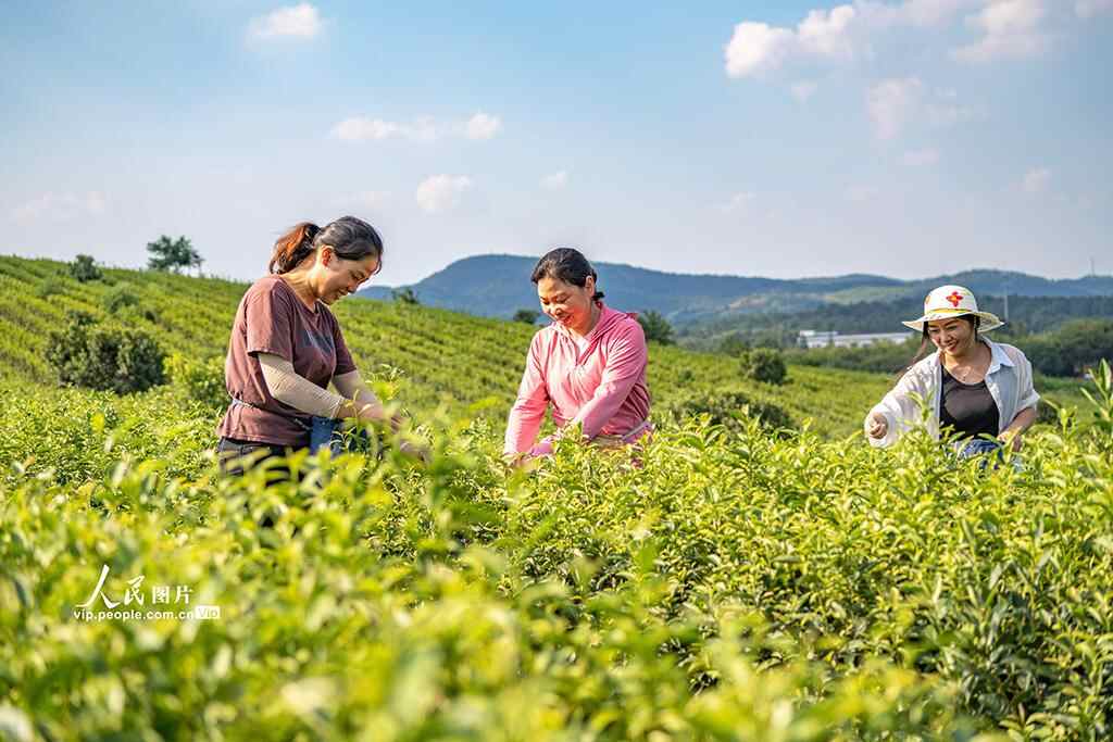 近年来,溧水区晶桥镇芝山村依托山地土壤富硒特性优势,先后引进龙井长叶、中茶108、金萱等优良茶树品种,综合运用无性系繁苗技术、生态种养管理模式,种植的富硒茶树每年可进行春、夏、秋三季采收上市,成为村民和村集体增收的一大经济来源。朱红生摄(人民图片网)