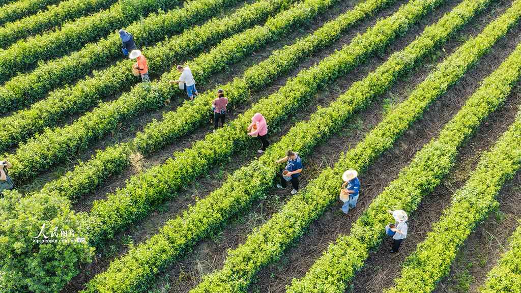 2025年8月17日,江苏南京市溧水区晶桥镇芝山村300余亩富硒茶园绿意盎然,村民们正忙碌在茶垄间采摘秋茶。