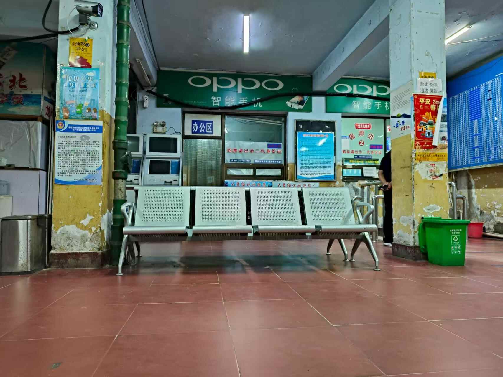 走进候车厅,只见100多平方米的厅内摆了5排座椅,四周有售票处、办公区、退票窗口,有个窗口还挂着“党员先锋岗”的标志。站内墙皮脱落,厅内一角堆着零食饮料箱,旁边摆着冰箱、电饭煲,向乘客售卖矿泉水、熟玉米等食品。