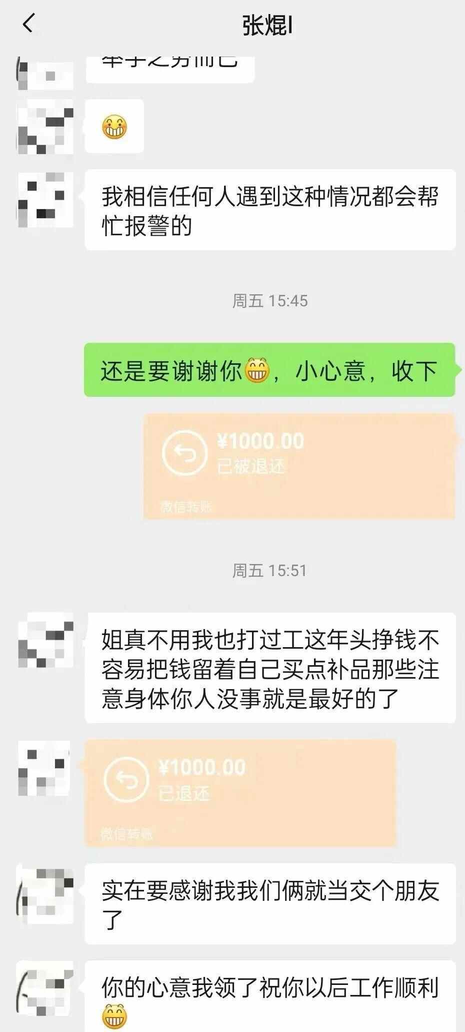获救后,周女士曾给张焜发红包