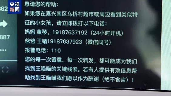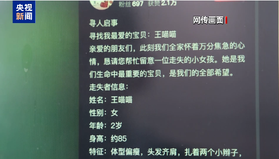 今年7月23日,一位名叫“诺言”的网民在抖音短视频平台发布了一条“2岁女童王喵喵走失的寻人启事”,在网上引发关注。