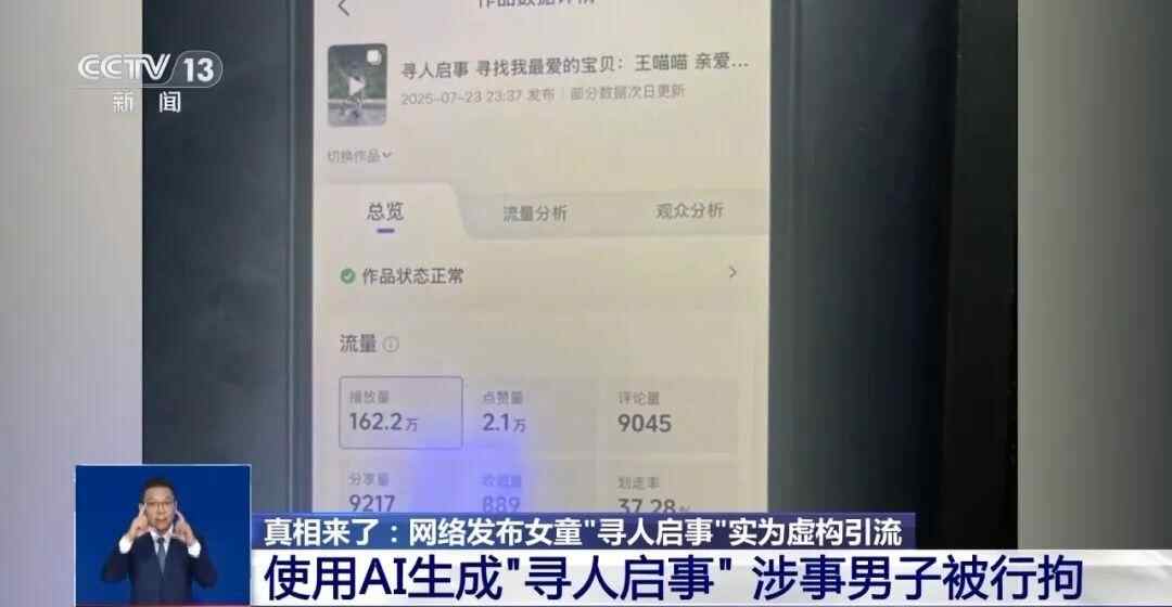 嘉兴市公安局南湖区分局新丰派出所副所长 于炜彬:我们在讯问的过程中了解到,王某某就是为了在线上博取关注度、获取流量,编造了小女孩走失的消息。