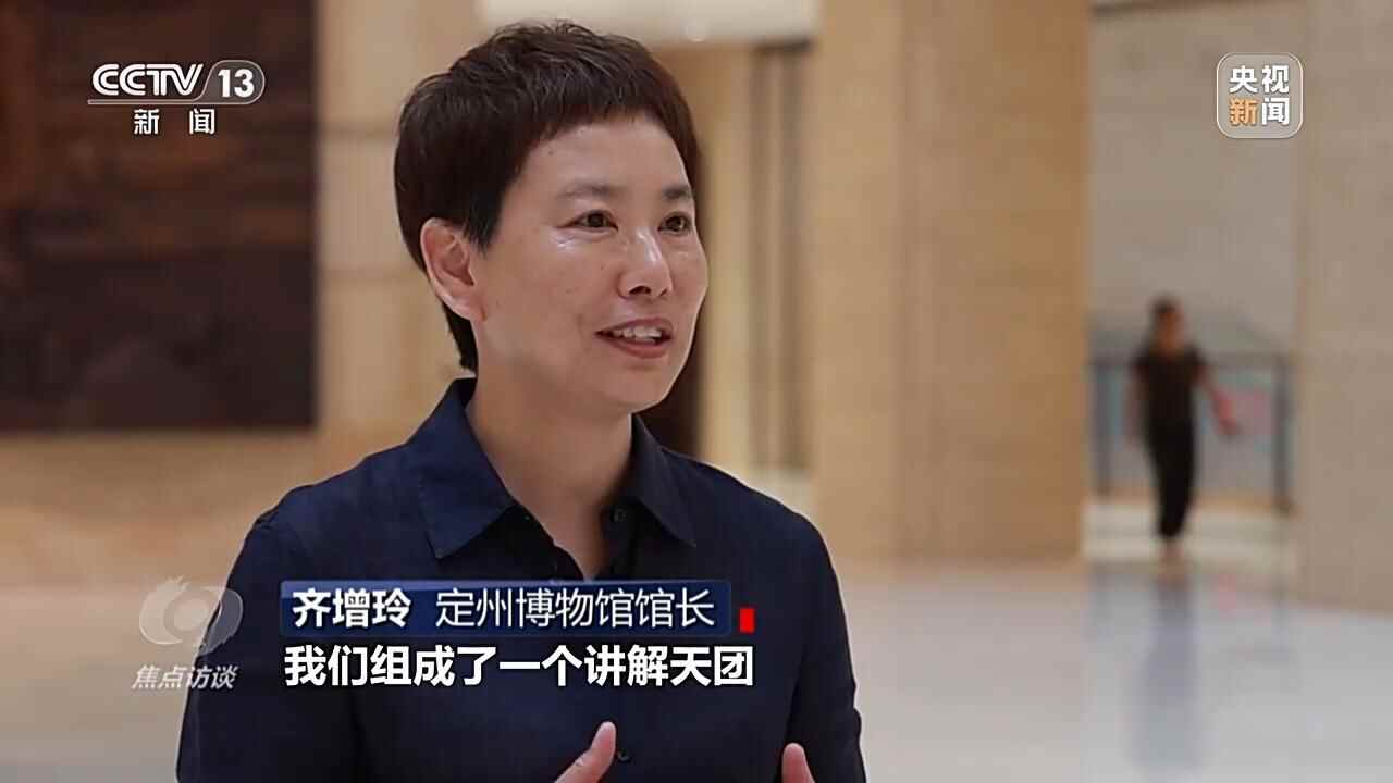 定州博物馆馆长 齐增玲:我们组成了一个讲解天团,就是由馆长、馆员和专职讲解员,每天为游客提供4到8场的公益讲解。今年定州市推出了面向全国学生和教师的一个免费游定州的举措,这类人群只要是五人以上到博物馆里来我们就提供免费讲解。