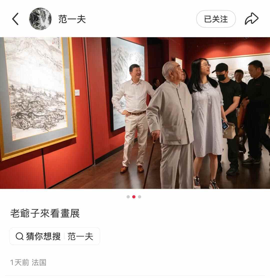 8月17日,账号名为“范一夫”的博主在小红书平台发布了一条内容为“老爷子来看画展”的消息,并配发了多张范曾在画展现场的照片。由于该内容发布时,博主的IP地址显示为法国,因此有不少网友和媒体猜测范曾正在法国看展,这是“范一夫”为了回应近期网上关于范曾“失联”的消息。