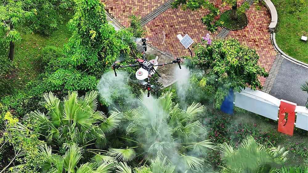羊城晚报记者18日从广州白云区城市管理和综合执法局(以下简称“白云区城管局”)获悉,8月17日,该局通过使用植保无人机,将环保灭蚊药剂转化为绵密的药雾,均匀洒向压缩站或公共绿地。据统计,仅这一天,无人机消杀面积达5.6万平方米。