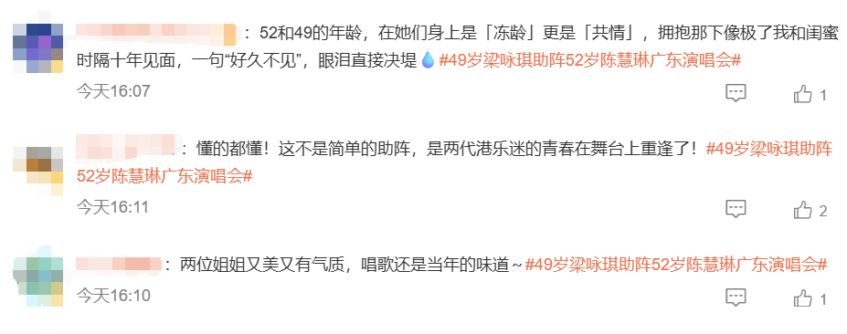 不少网友刷到视频后直呼:“两代港乐迷的青春在舞台上重逢了!”