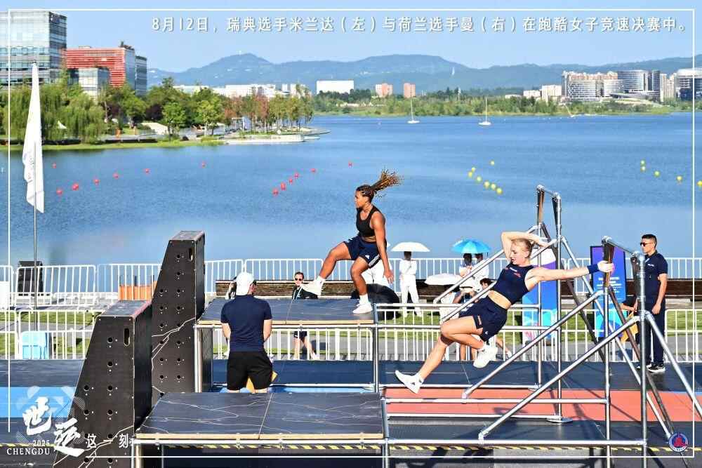 轮滑健儿在绿荫环绕的赛道上疾驰