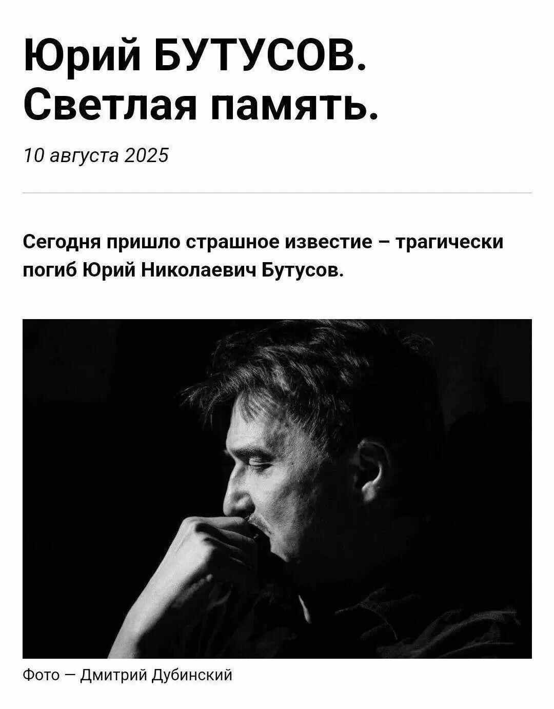 据乌镇戏剧节官方账号11日发布的悼文,8月10日俄罗斯当地媒体报道,当代俄罗斯戏剧界领军人物、著名导演尤里·布图索夫(Yury Butusov)在保加利亚度假期间不幸溺水身亡,享年63岁。