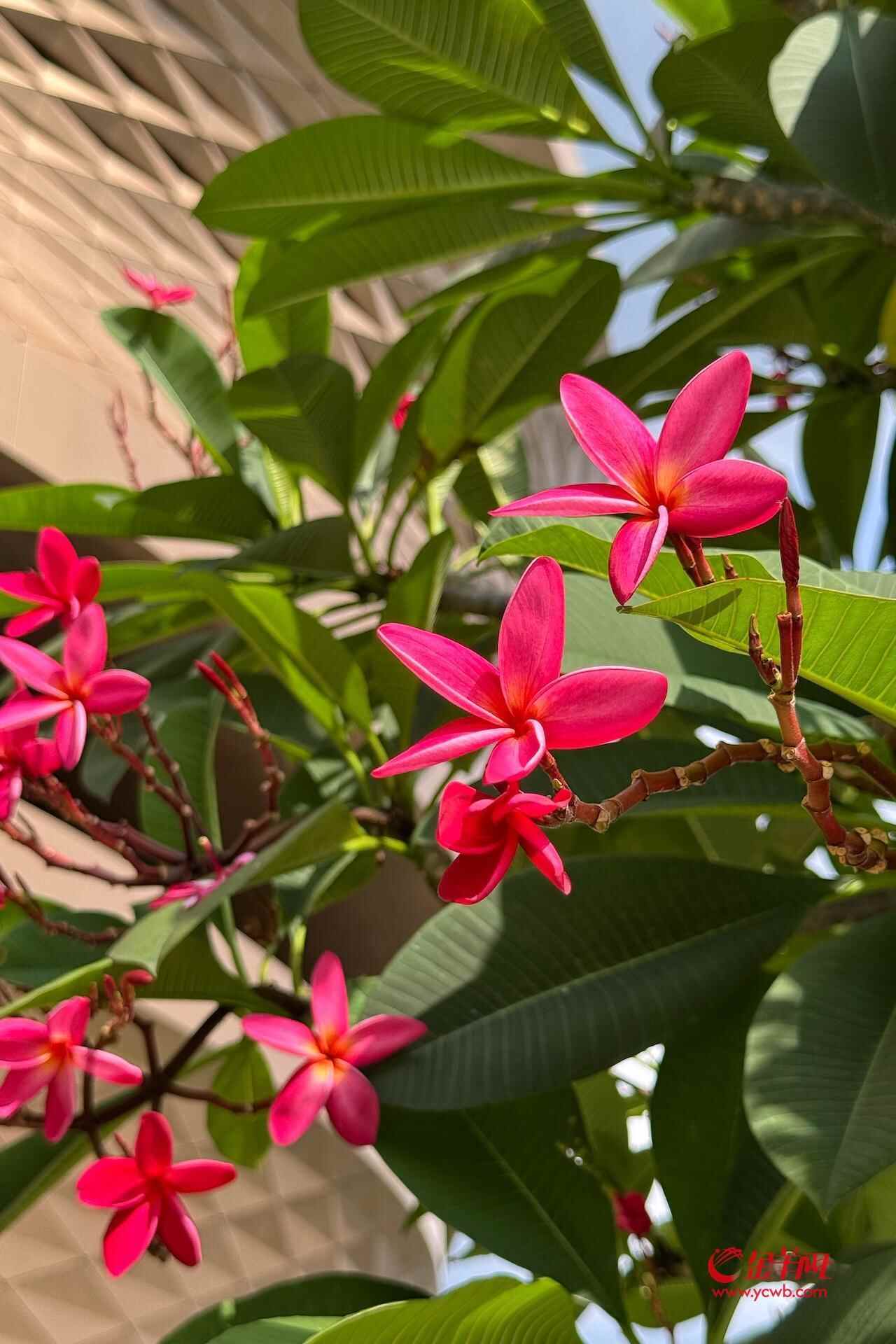 风雨兰、鸡蛋花、龙船花、蓝花丹、黄蝉……夏日时晴时雨的天气挡不住它们盛开的脚步,它们以温柔的姿态,为城市添上一笔笔灵动色彩。