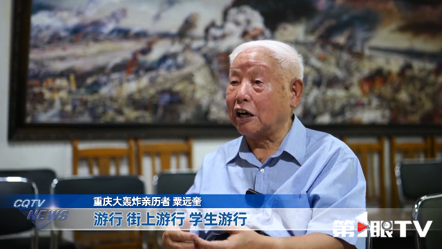 重庆大轰炸亲历者粟远奎说:“大家高兴起来,活跃起来,游行,街上游行,学生游行,市民游行。当时那个游行的举起那个纸做的旗帜欢呼,抗战胜利了!中国胜利了!”