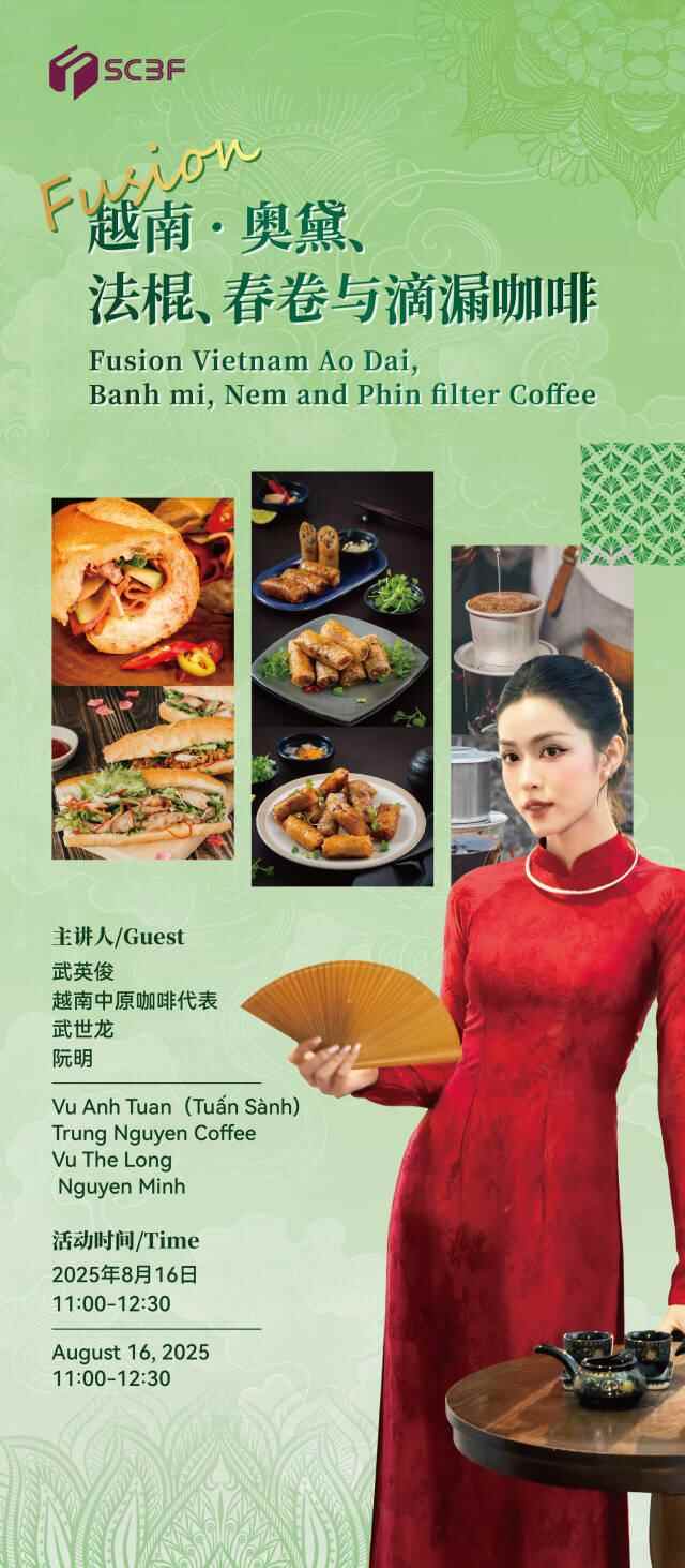 最让人惊艳的是,馆内专设越南市集,越南著名服装设计师武英俊将带来越南传统服饰奥黛的展示走秀,并与越南作家武世龙、越南中原咖啡品牌、广州知名的地道越南餐饮品牌联袂开展“Fusion越南·奥黛、法棍、春卷与滴漏咖啡”越南生活文化展示活动。特设越南文旅展区展示越南的艺术品、奥黛传统服饰和最新文旅资讯,特别展出越南国礼同款“画中画”刺绣珍品,直接欣赏是荷花与木棉图案,投影观赏是河内地标奎文阁和广州地标“小蛮腰”,寓意越粤交好。此外,观众还可品鉴越南滴漏咖啡、越南法棍、春卷等美食。观众漫步越南馆,既能了解中越友好的历史源流,又能体验现代越南的开放活力,有看、有学、有玩,全方位沉浸式感受越南文化。