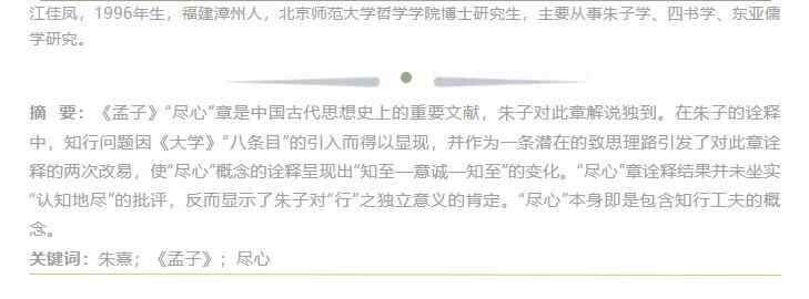 江佳凤曾在《哲学研究》《哲学与文化》等国内外高水平学术期刊发表论文6篇;参与国家社科基金项目2项;担任《国际儒藏·韩国编》审校专业委员会审校专家;先后获国家奖学金、北京师范大学“研究生学术创新奖”特等奖、二等奖,北京师范大学哲学学院优秀博士学位论文等荣誉。