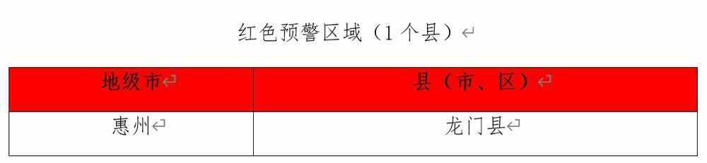 河源东源县、龙川县、紫金县,惠州博罗县,汕尾陆河县,梅州大埔县、丰顺县、梅江区、梅县区、平远县、五华县、兴宁市,广州从化区,揭阳揭东区、揭西县、普宁市,清远佛冈县、英德市,韶关翁源县、新丰县,潮州潮安区、饶平县,局地发生山洪灾害可能性大(橙色预警)。