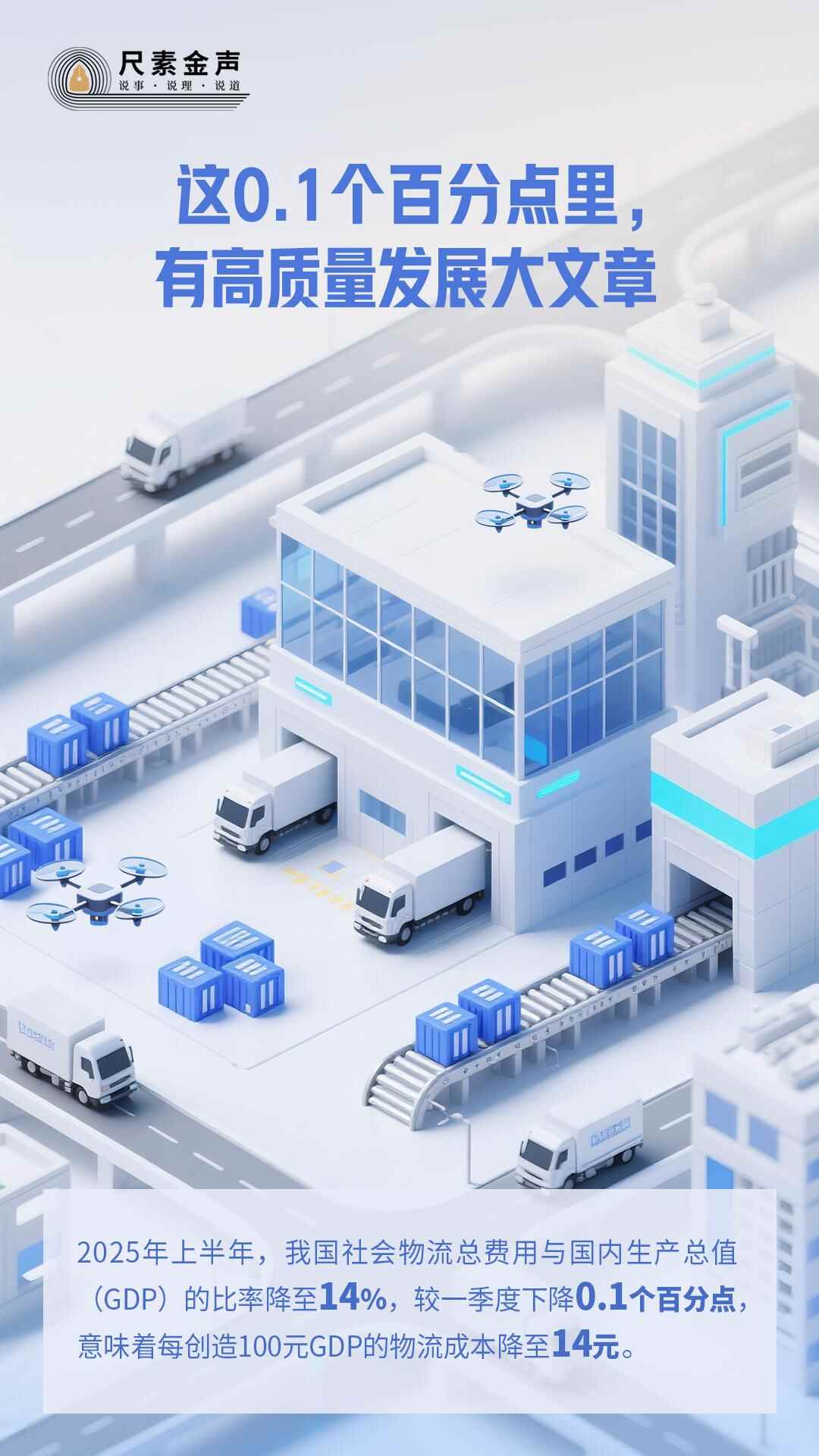 0.1个百分点,看似不起眼。但若以当前中国经济体量测算,相当于半年节约物流成本超过1300亿元,为国民经济特别是实体经济运行减轻负担,带来真金白银的实惠。