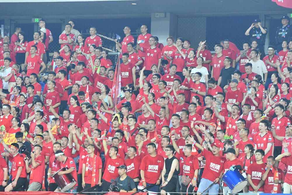2025江苏省城市足球联赛第六轮比赛,常州队球迷为球队加油助威。新华社发(刘臻睿摄)