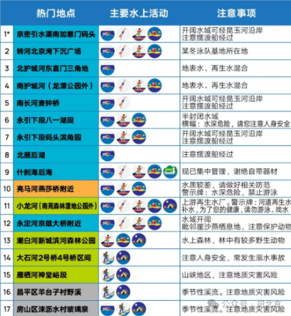 户外水域是广大市民、游客消暑纳凉的好去处。在网络平台上搜索 “北京公开水域”“户外玩水” 等关键词,便能获取许多相关内容——“8处合法开放游泳点位”、“北京城内隐藏的天然泳池”......有的攻略不仅详细罗列了热门地点、注意事项、适宜活动,还总结了北京市内的“8个官方亲水点”。