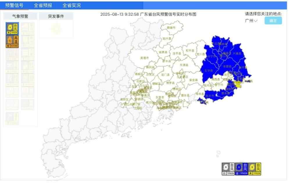 从8月12日傍晚起,广东多地除了继续发布台风预警信号外,饶平至惠来间沿海地区更将台风白色预警信号升级为台风蓝色预警信号。