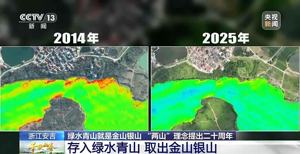 卫星从太空捕捉到更多变化。二十年前,群山间,遍布着70多处矿区和水泥厂。如今,高污染高排放的化工厂不见了,变身零碳乡村图书馆和展览馆,全年吸引游客超120万人次,一年新增生态价值3500多万元。咖啡在高峰时一天能卖出8000多杯。