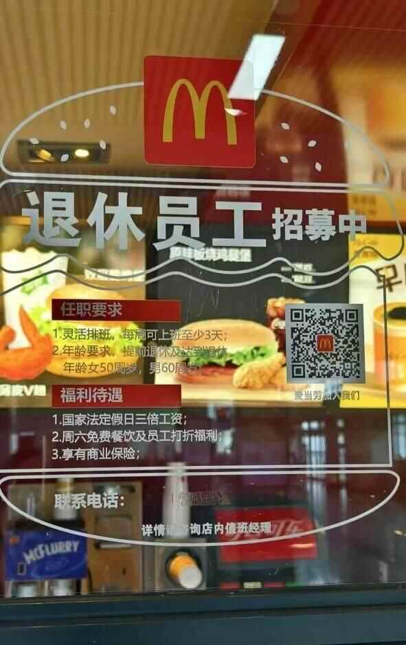 ◆麦当劳招聘退休员工?真的!已存在多年。详情-->