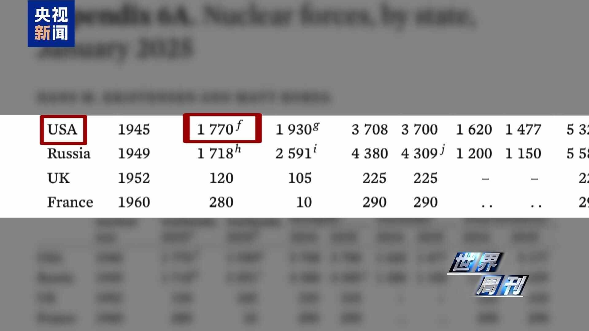 今年1月,瑞典斯德哥尔摩国际和平研究所发布报告显示,截至2025年1月,美国已在数百架轰炸机和导弹上共部署了1770枚核弹头,俄罗斯部署的数量为1718枚。