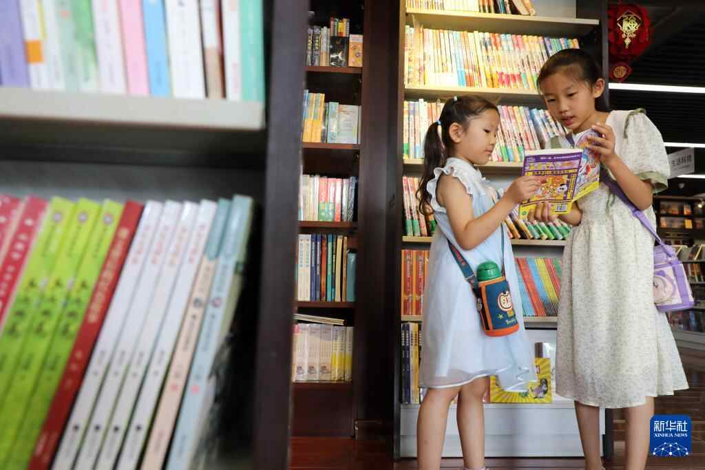 8月10日,在山东省滨州市博兴县新华书店,小朋友在阅读图书。