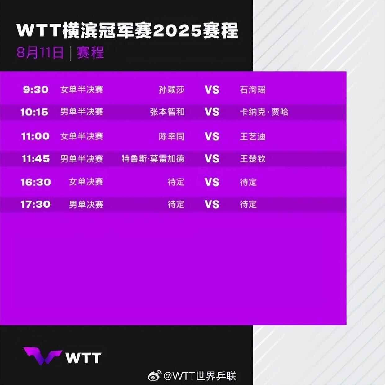 8月11日,2025WTT横滨冠军赛展开最后一个比赛日的争夺。男单半决赛中,王楚钦以4:0横扫莫雷加德,成功晋级决赛,北京时间今晚17点30分,他将与日本选手张本智和争冠。