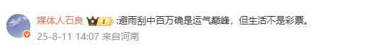 @媒体人石良:避雨刮中百万确是运气巅峰,但生活不是彩票。