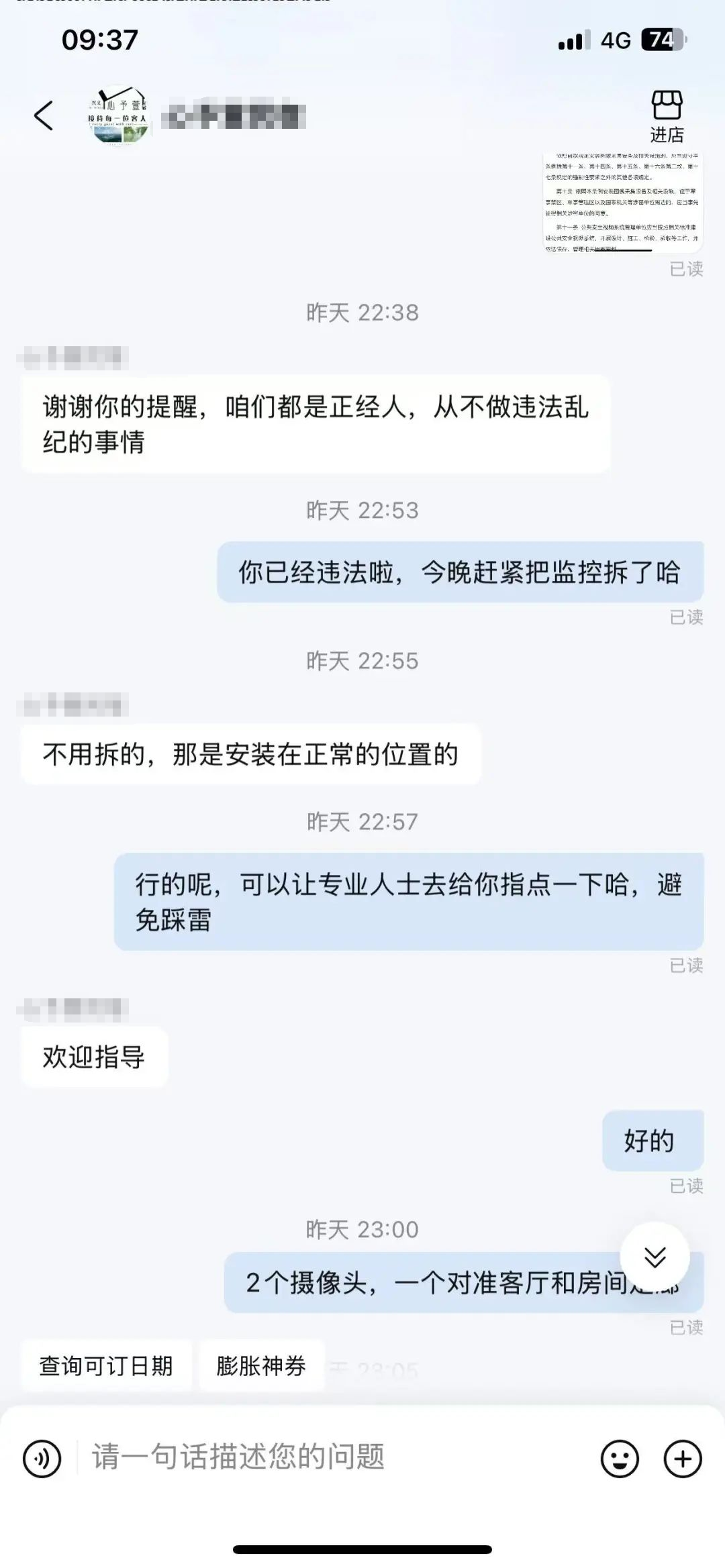 △民宿经营者向吕女士表示,不需要拆除摄像头