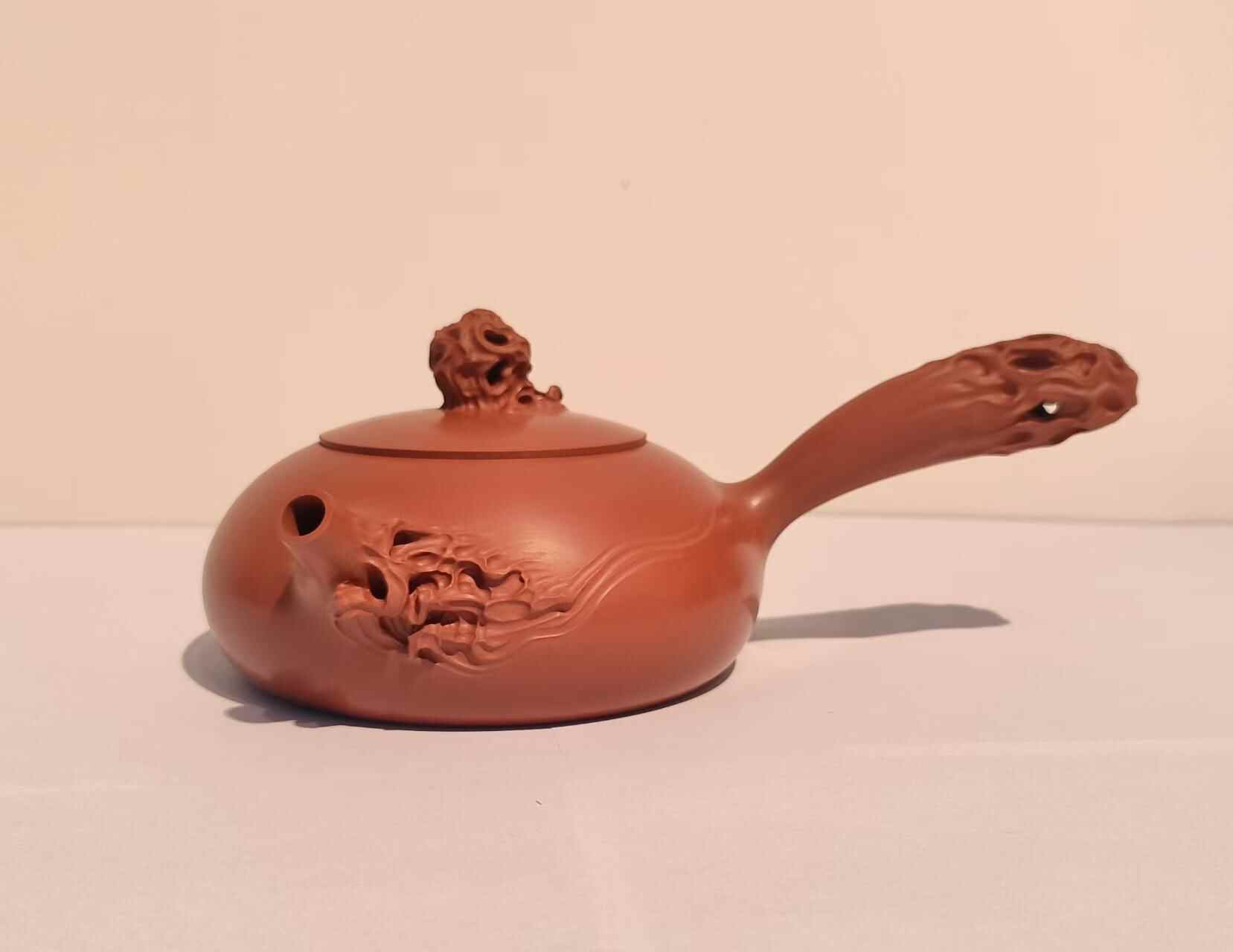 坭兴陶泥质细腻纯净,陶声清脆,其窑变纹理在陶艺界独树一帜。此外,坭兴陶还以融合少数民族文化元素与华夏传统文明的造型和图案著称,展现出鲜明的艺术风格。